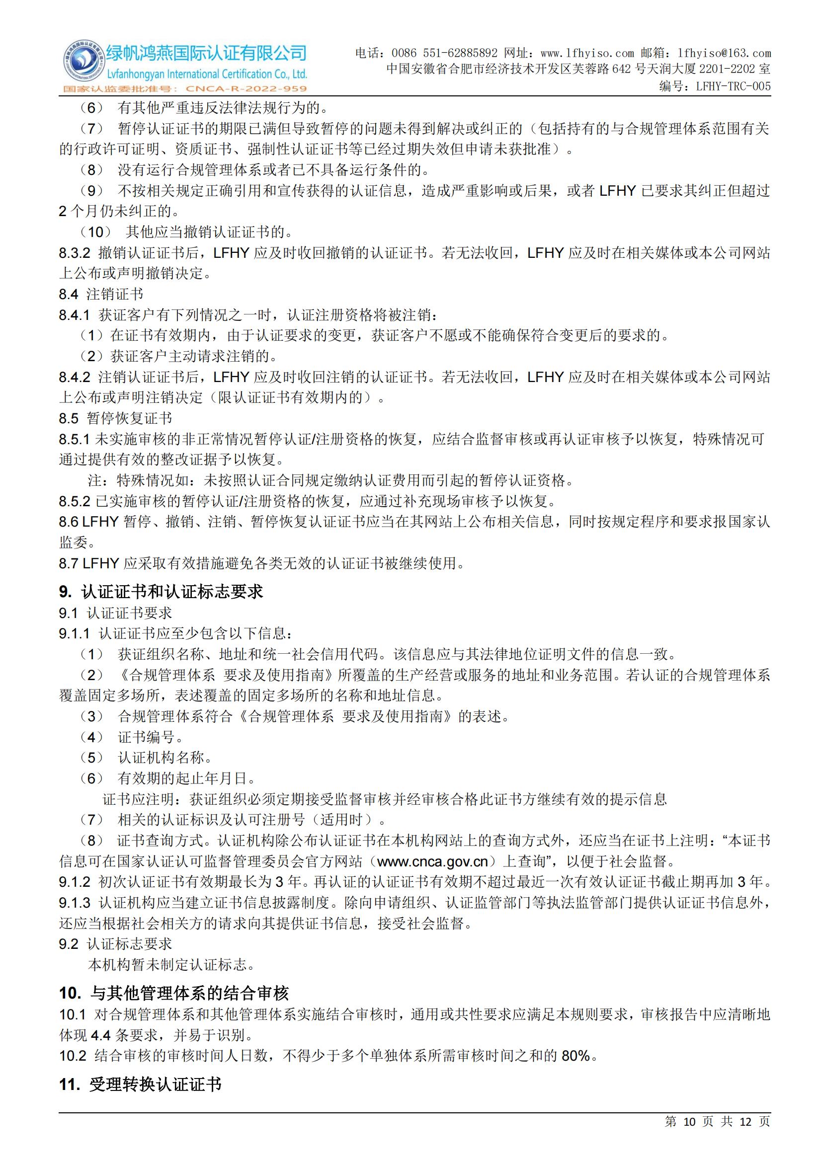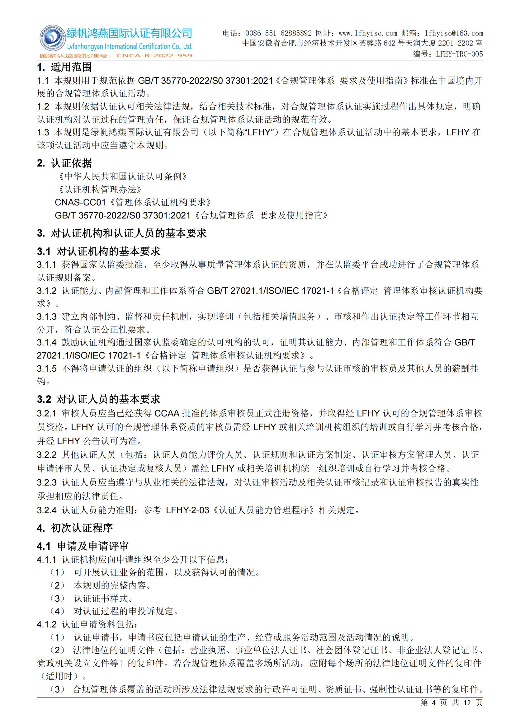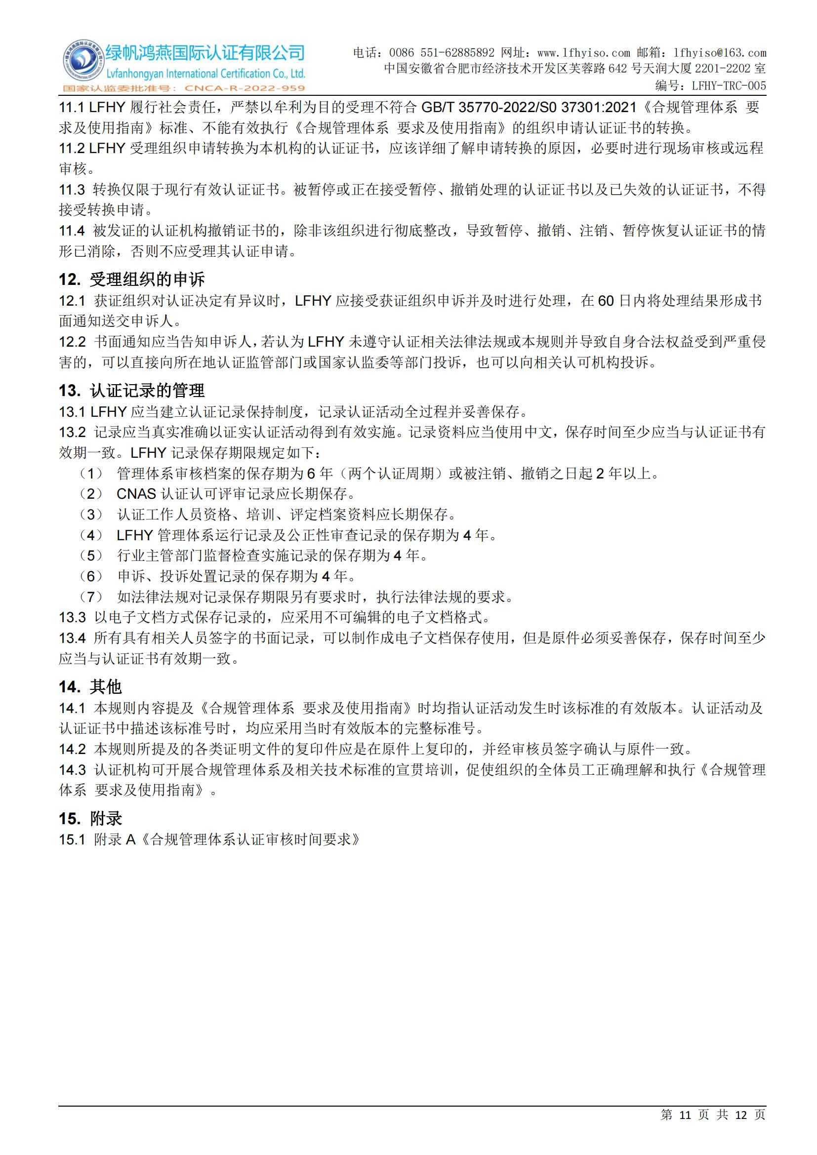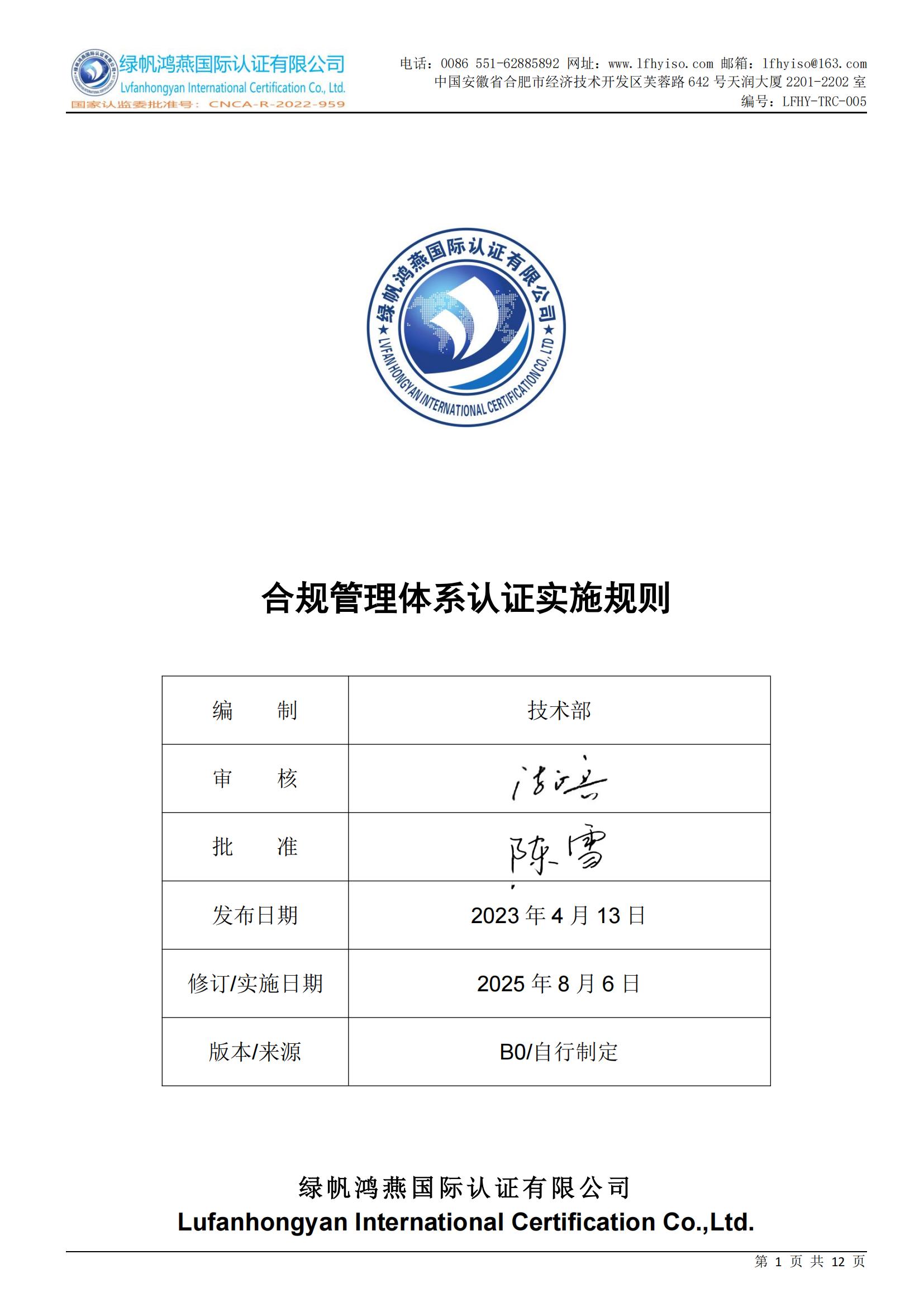 LFHY-TRC-005《合規(guī)管理體系認證實施規(guī)則》