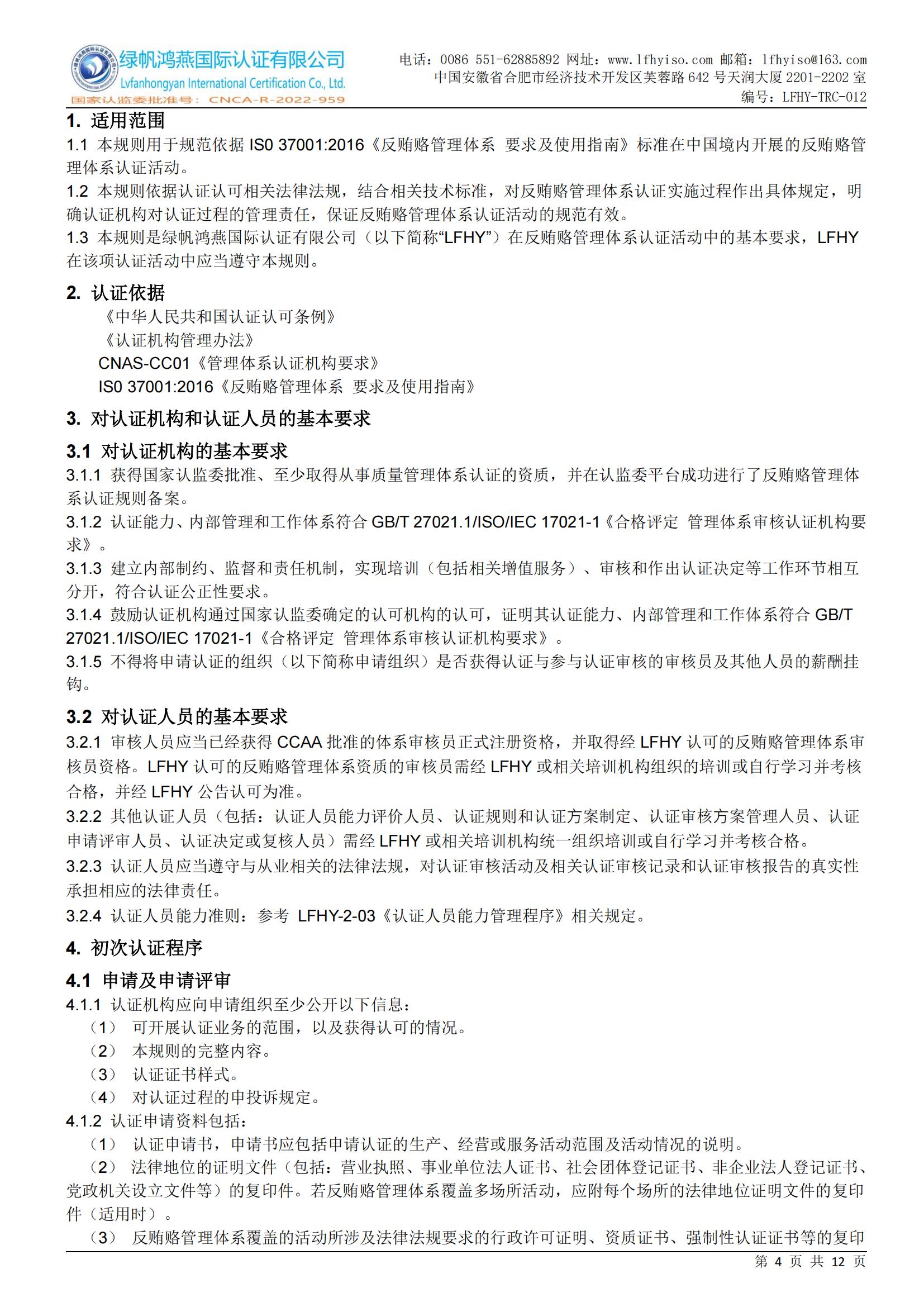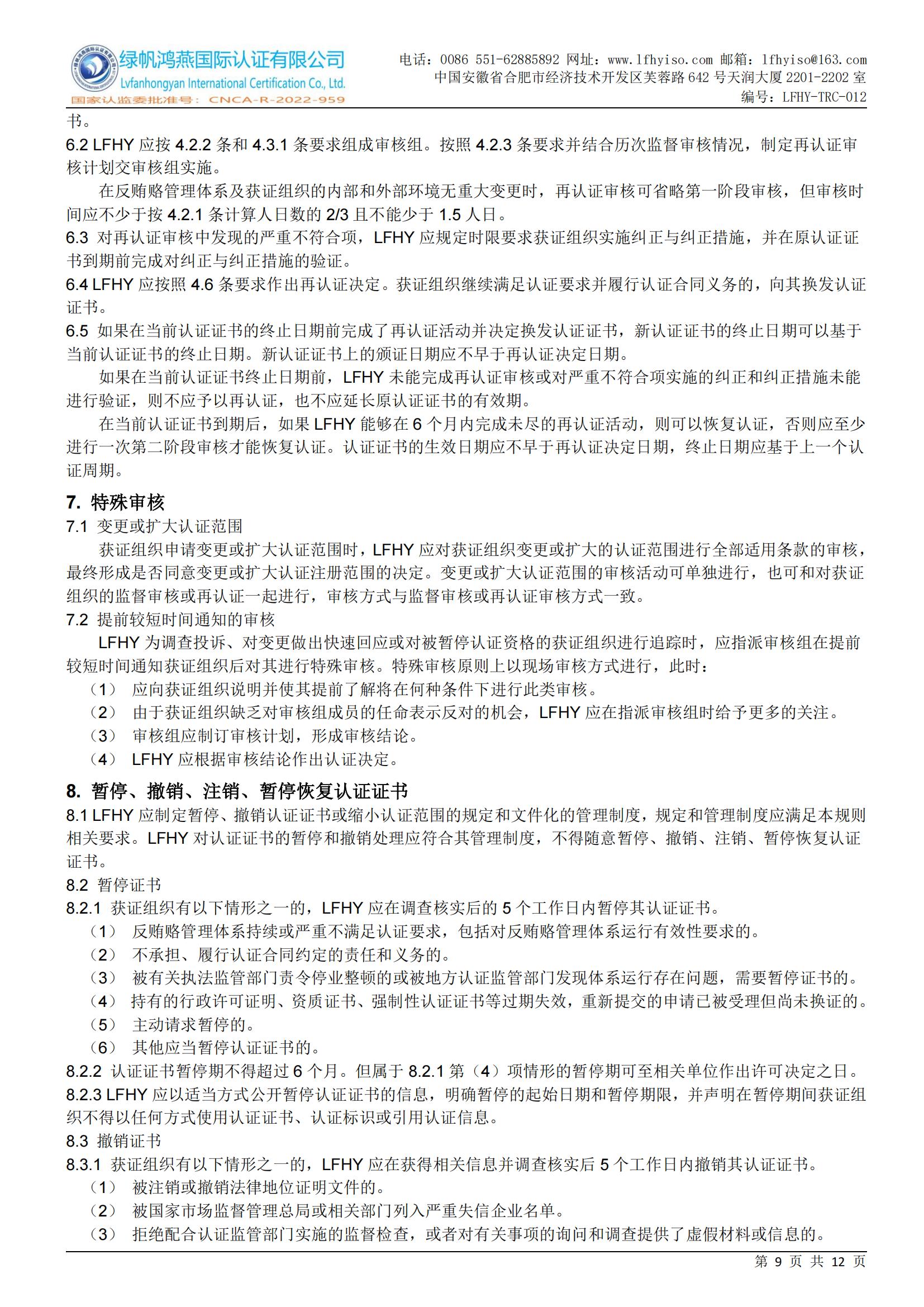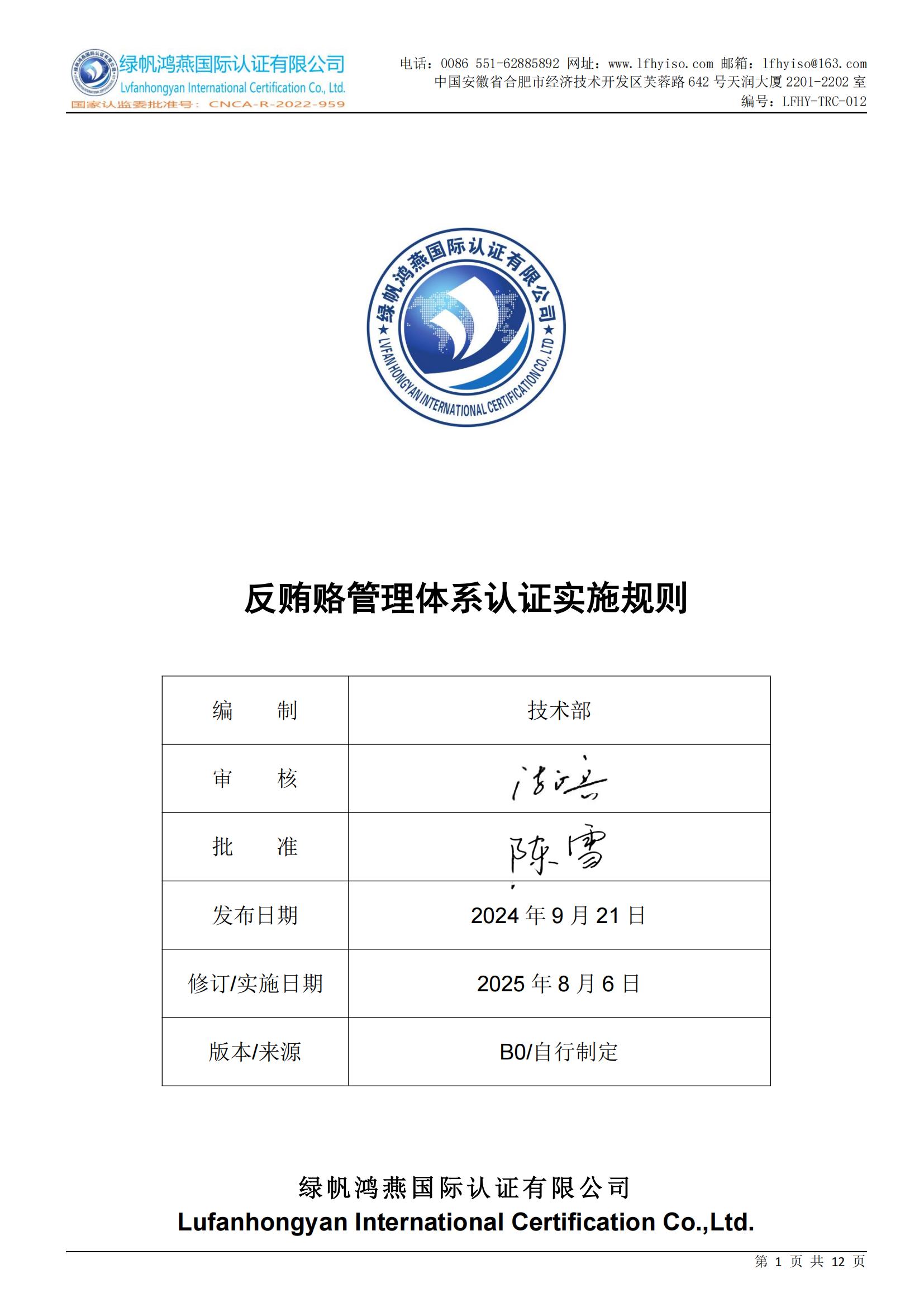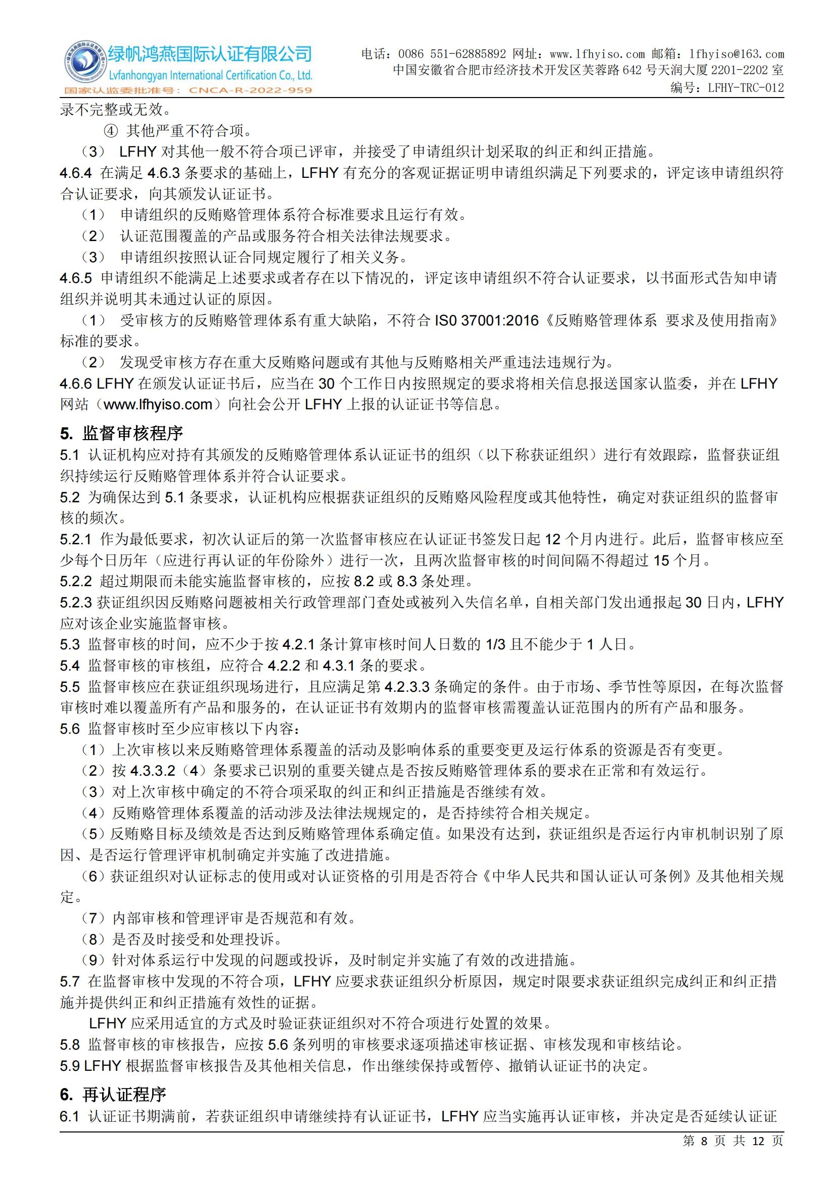 LFHY-TRC-012《反賄賂管理體系認證實施規(guī)則》