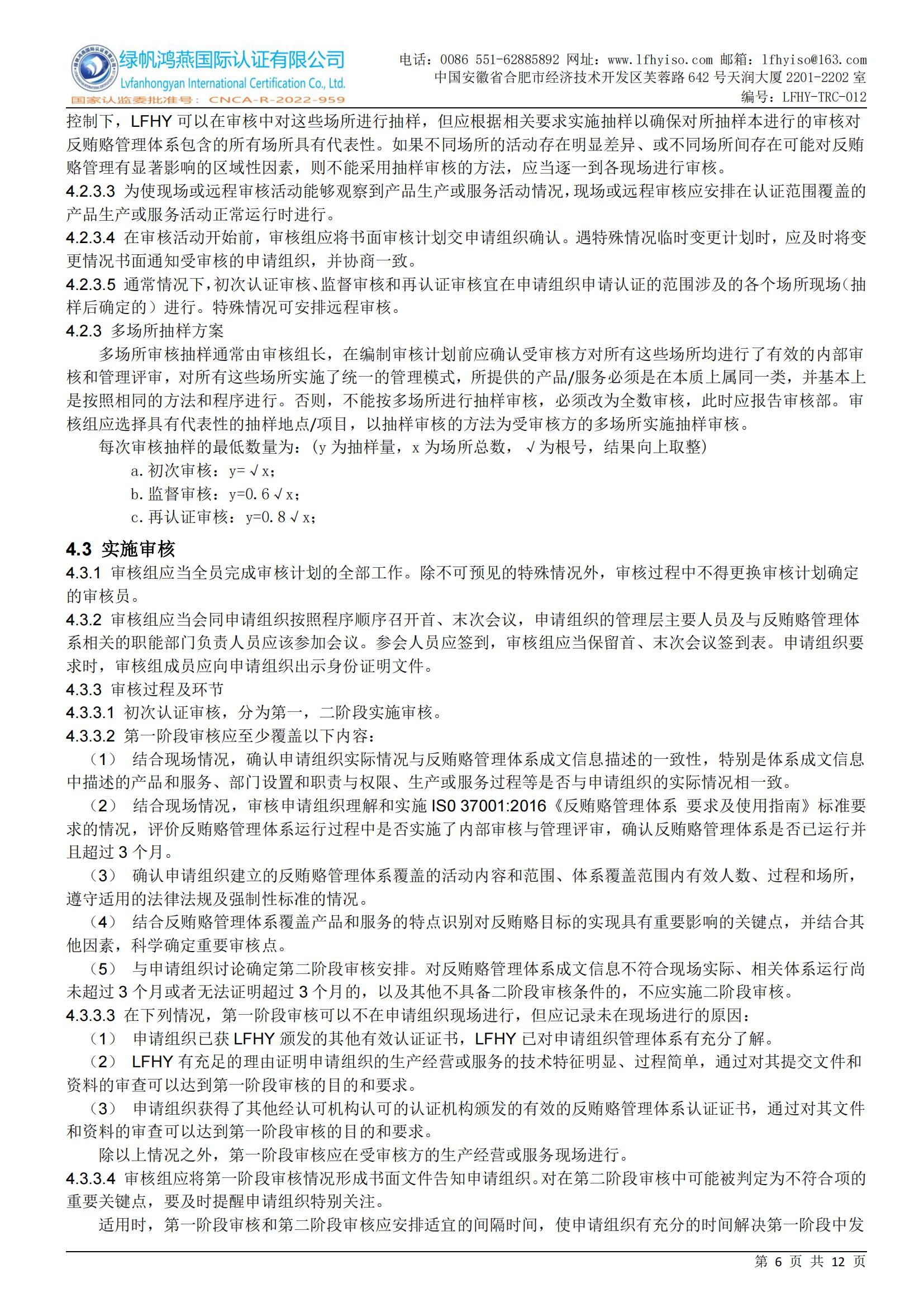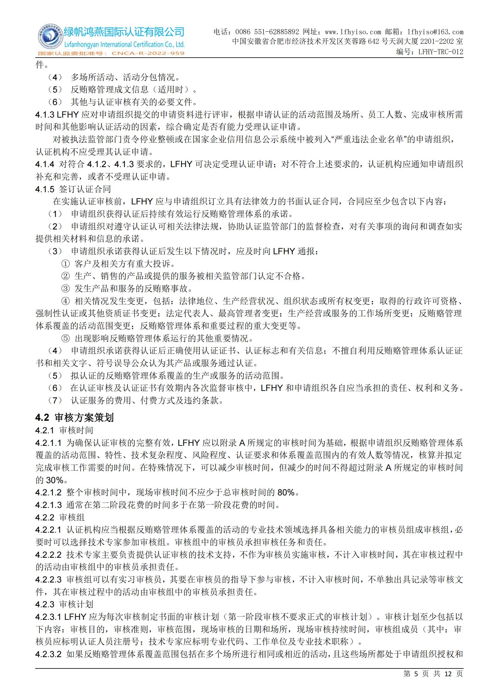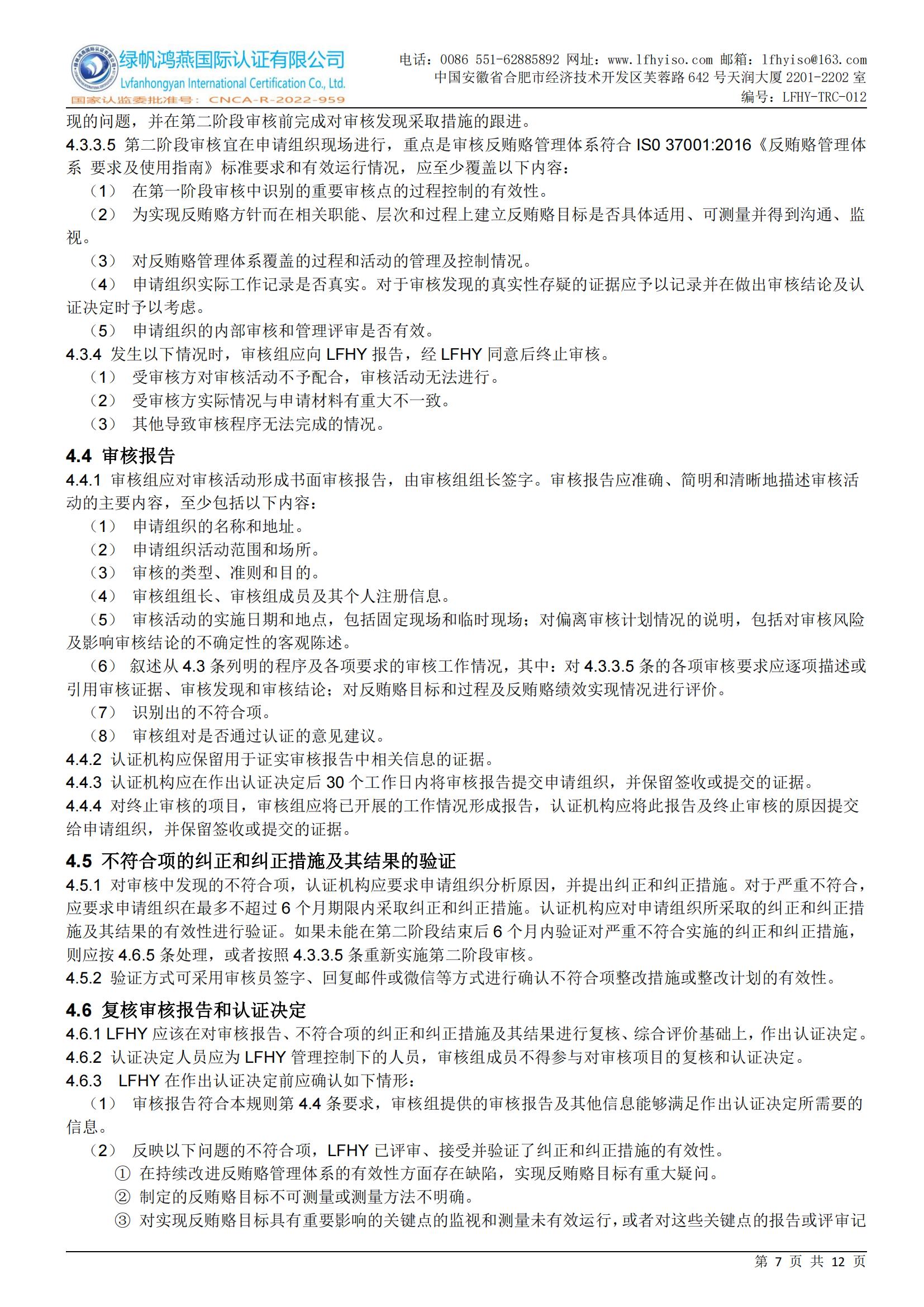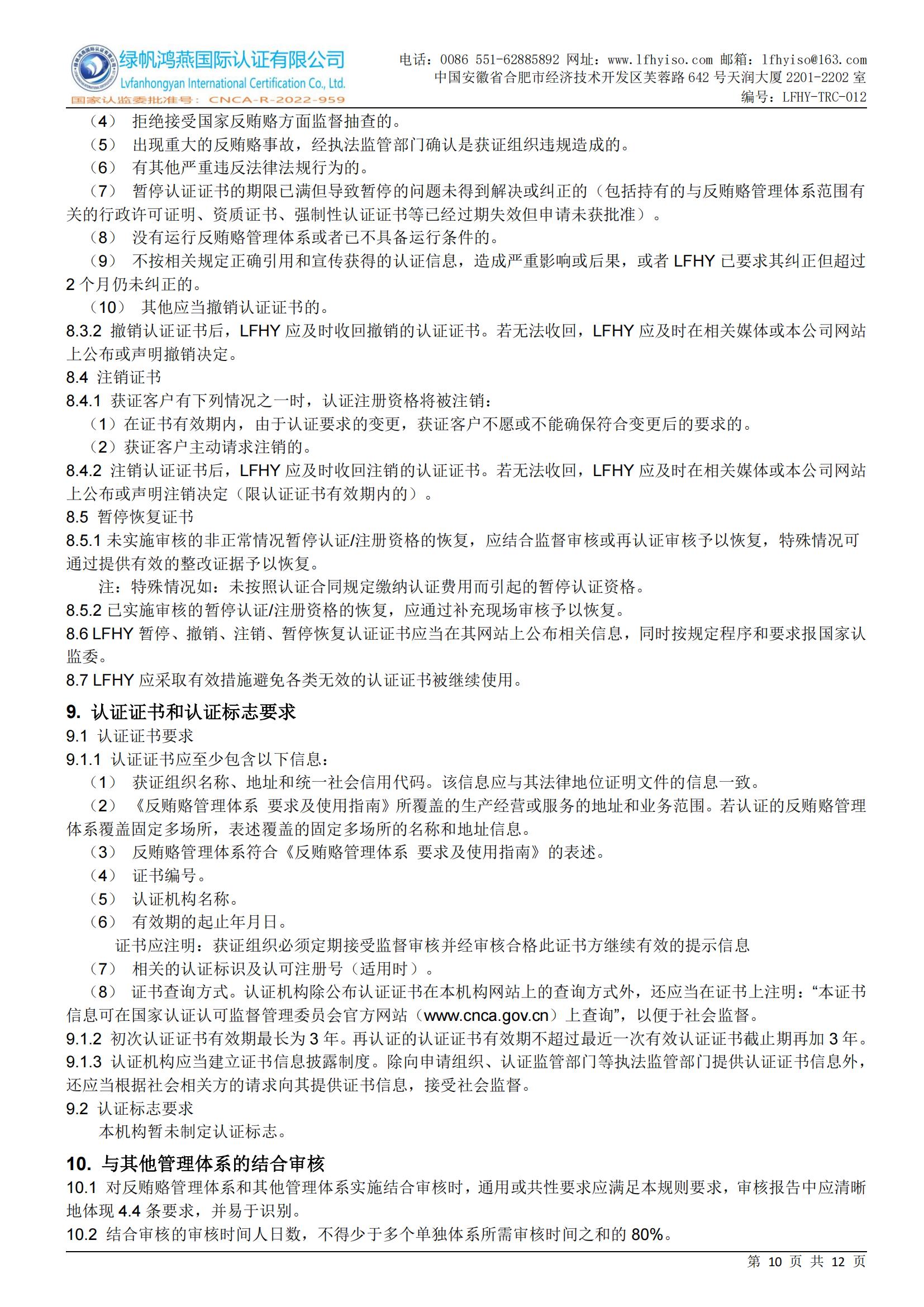 LFHY-TRC-012《反賄賂管理體系認證實施規(guī)則》