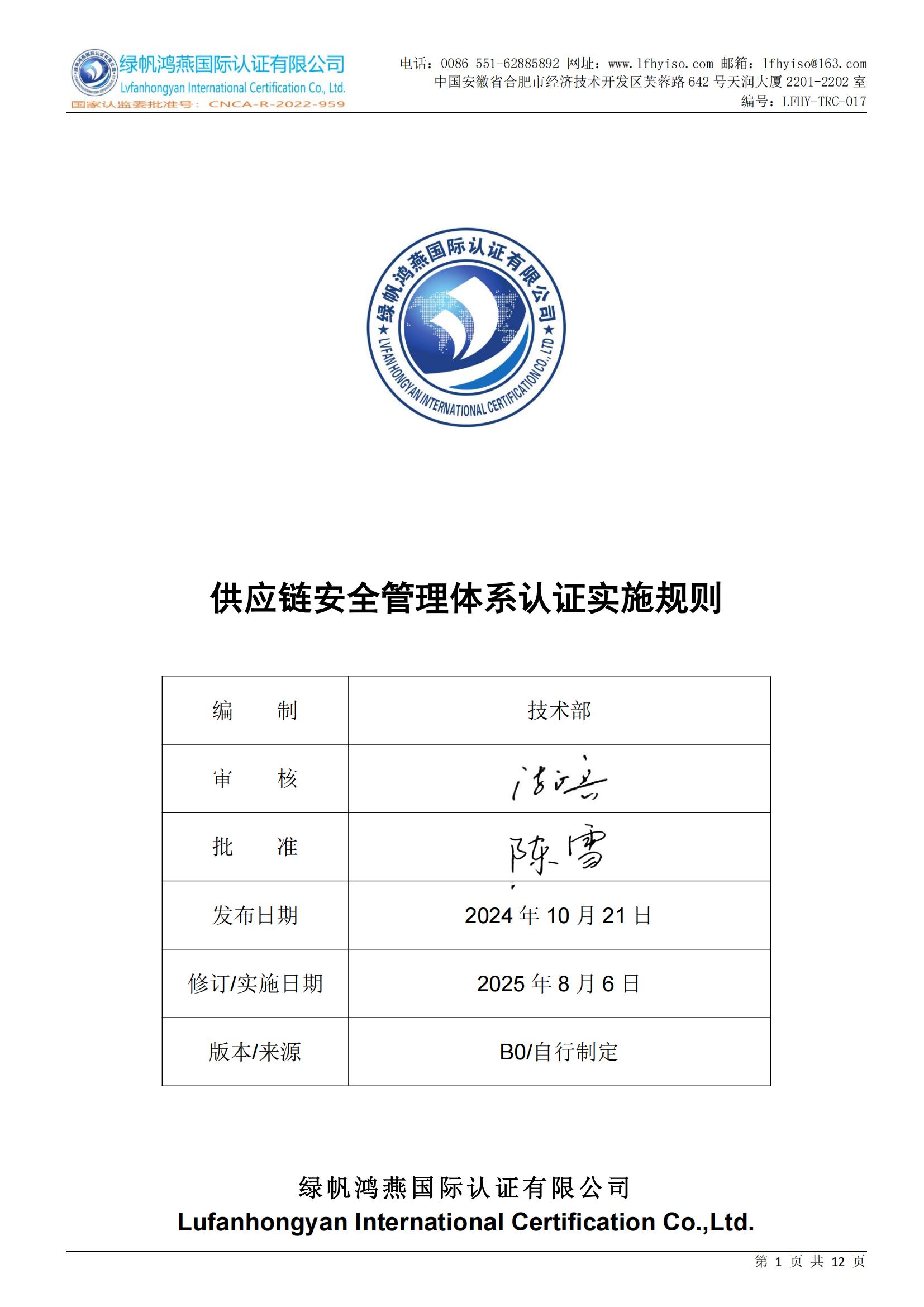 綠帆鴻燕國際認(rèn)證有限公司(簡稱LFHY)是經(jīng)國家認(rèn)證認(rèn)可監(jiān)督管理委員會(huì)批準(zhǔn)的第三方認(rèn)證機(jī)構(gòu)