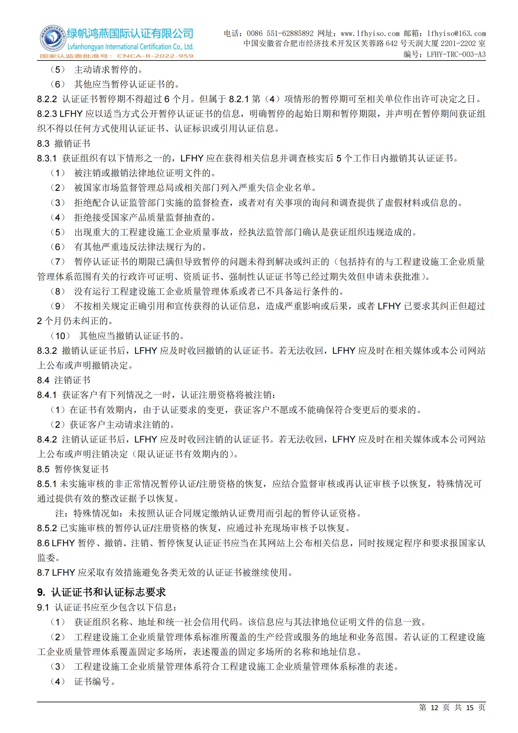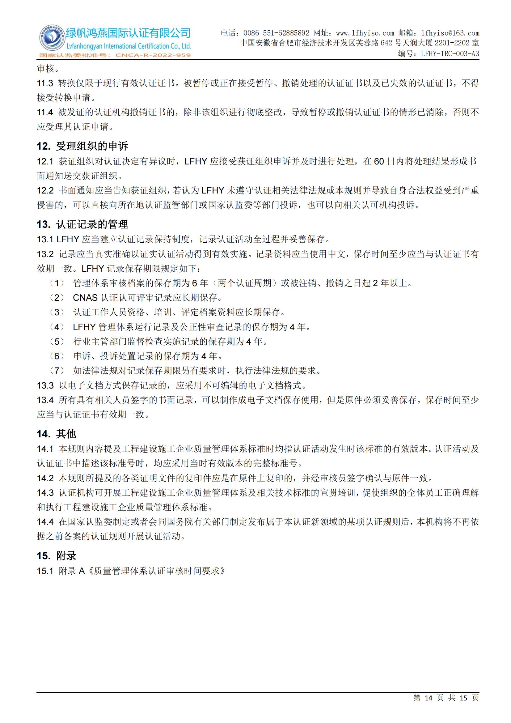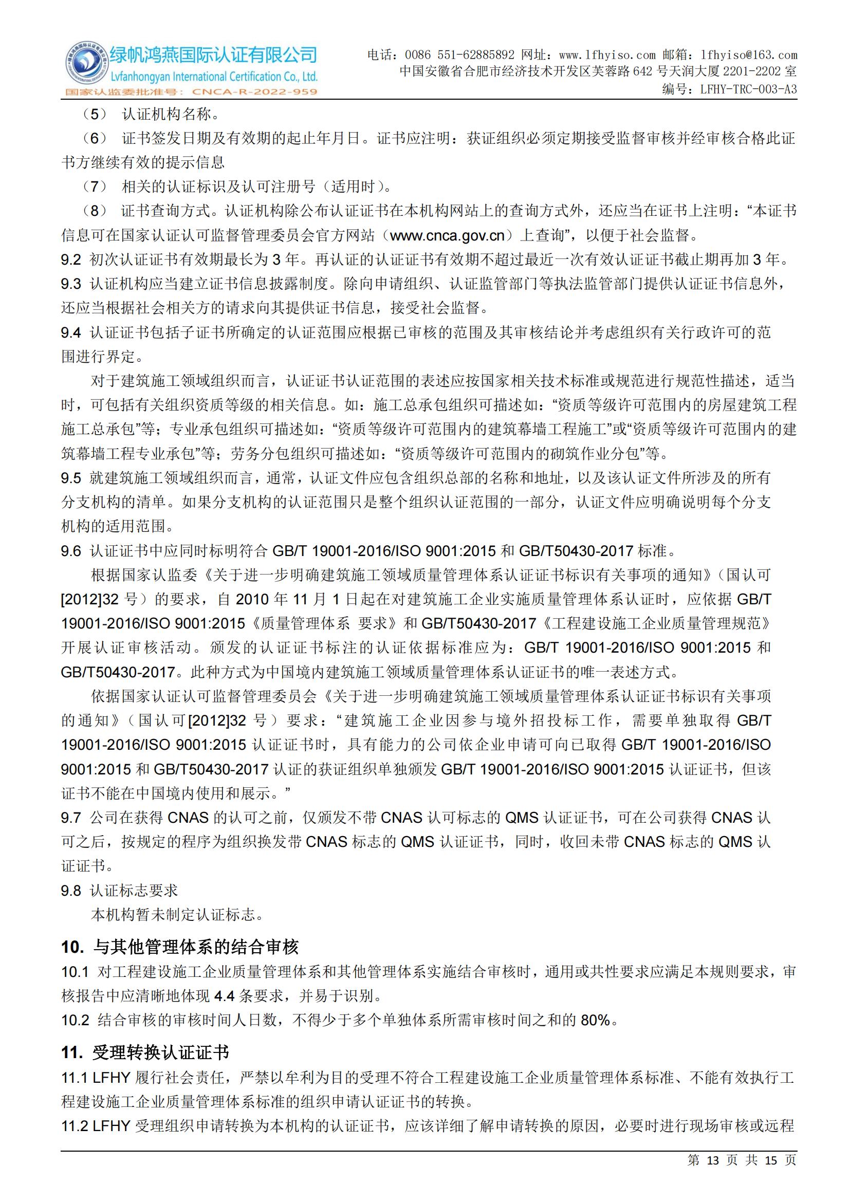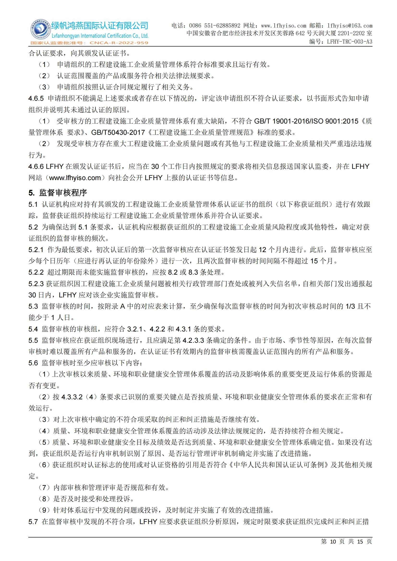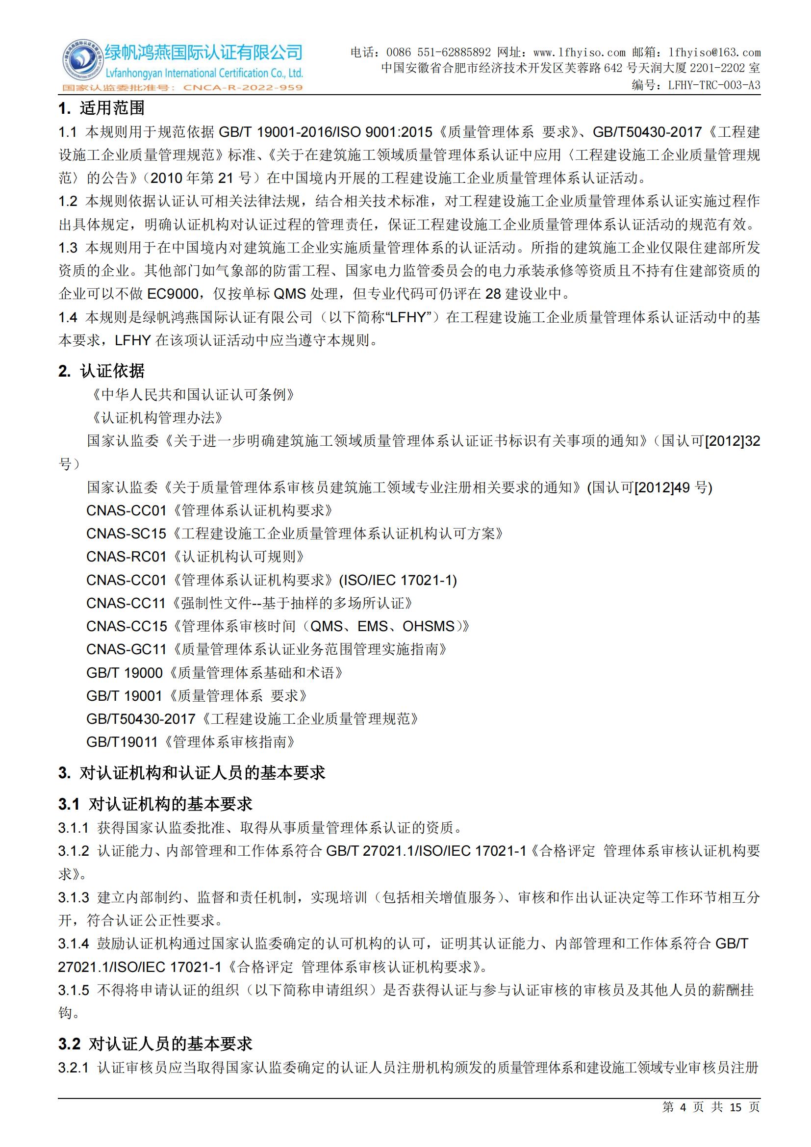 LFHY-TRC-003-A3《工程建設(shè)施工企業(yè)質(zhì)量管理體系認(rèn)證實(shí)施規(guī)則》