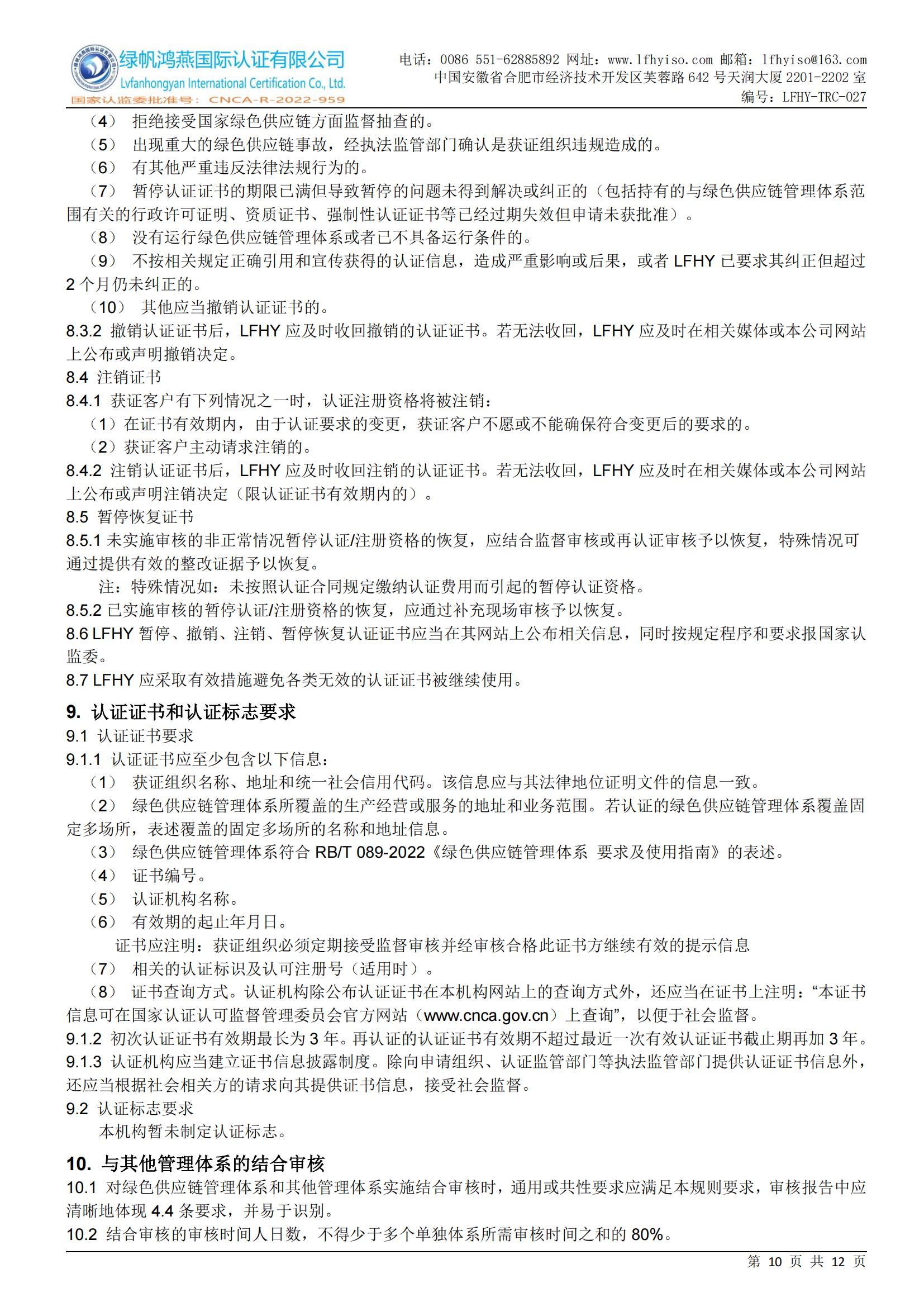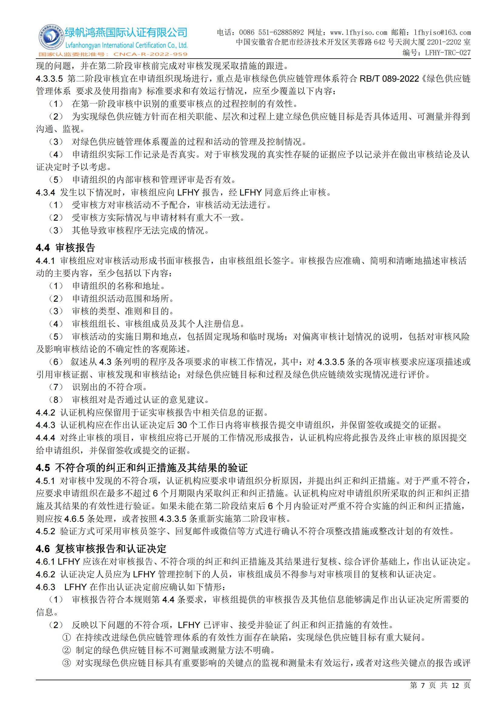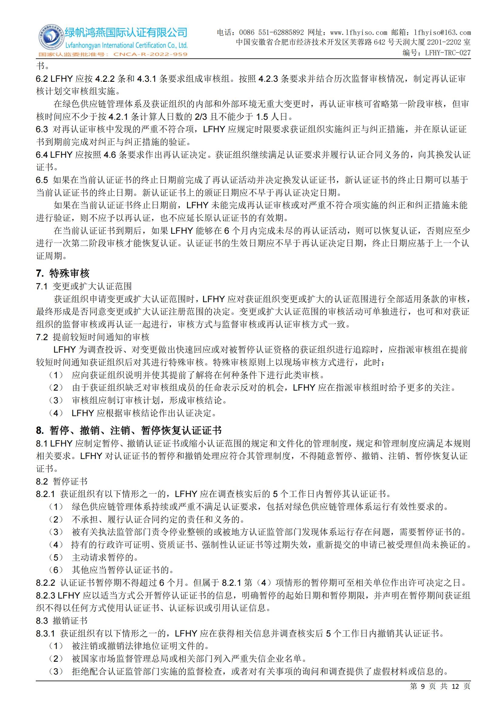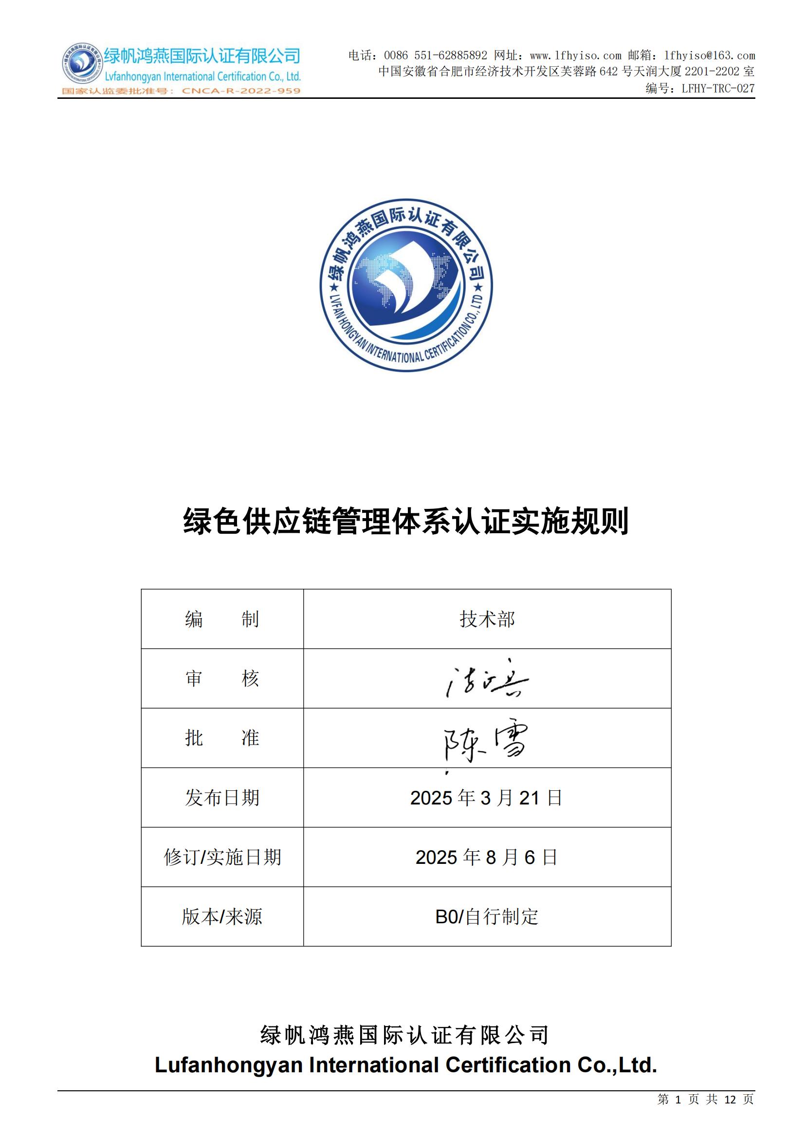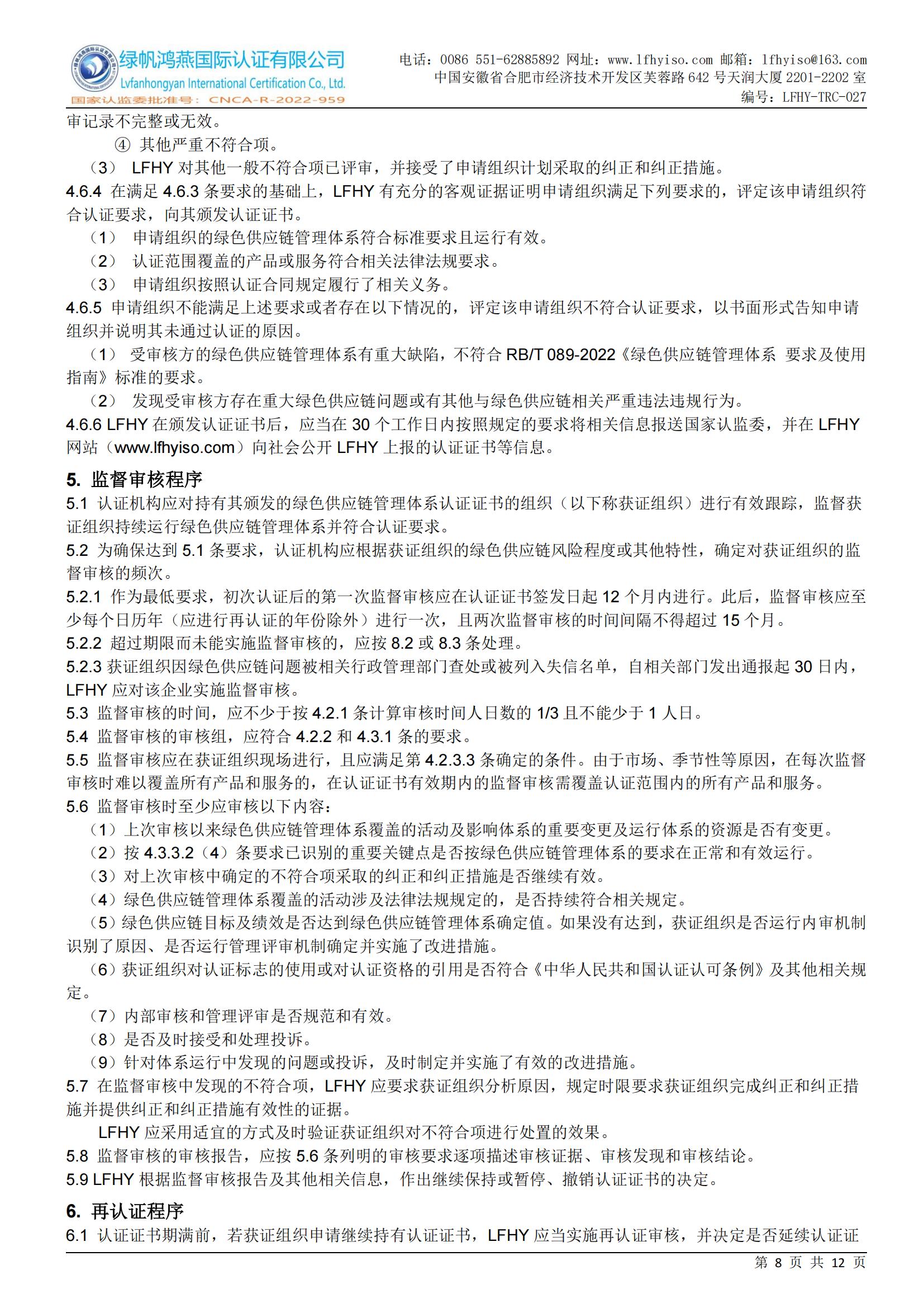 LFHY-TRC-027《綠色供應鏈管理體系認證實施規(guī)則》